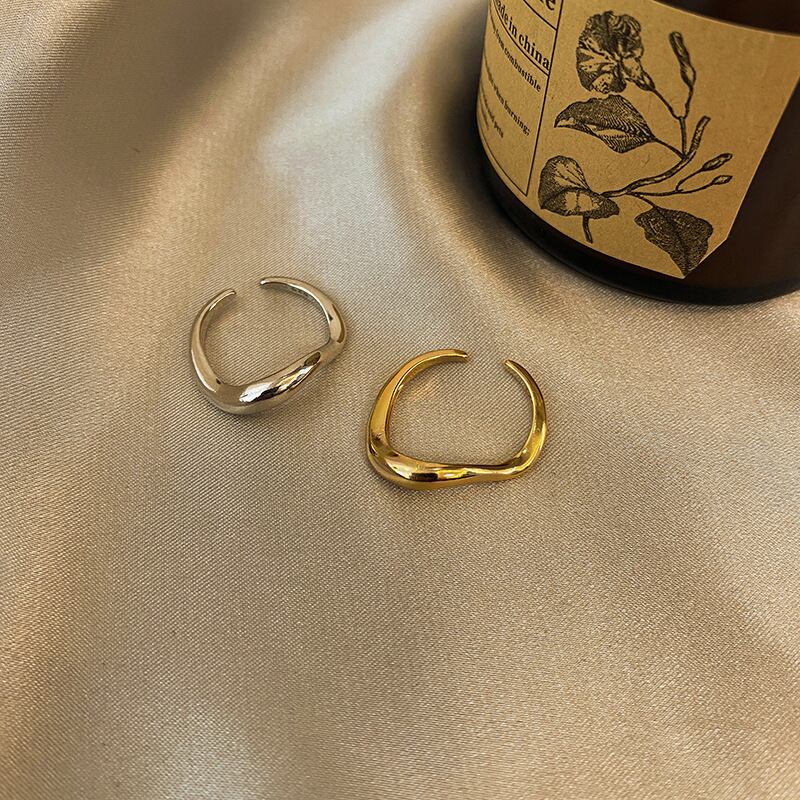 LIVVY シルバーカラーミニマリスト不規則なラインオープンリング女性トレンディなカップルパーティージュエリーギフト 指輪 銀 Liv41634981437