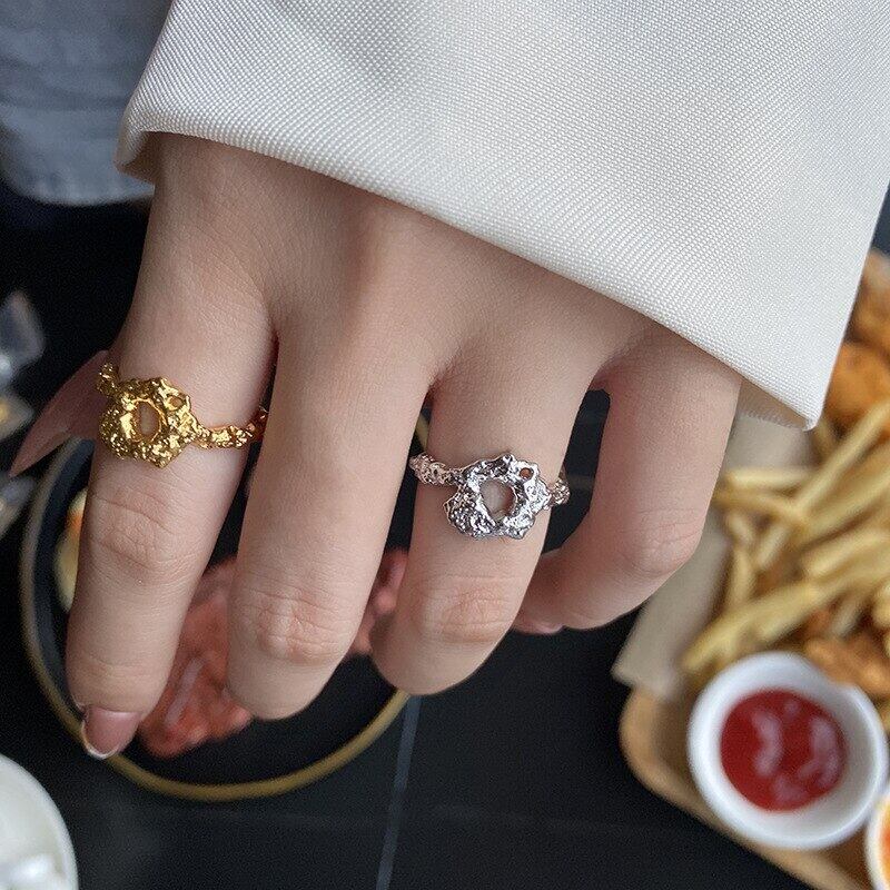 LIVVY 不規則な凹凸表面中空幾何学的調節可能なリング女性カップルユニークなジュエリーギフト アジャスタブル 指輪 Liv41739991505