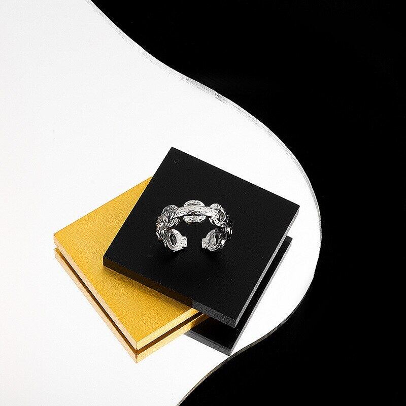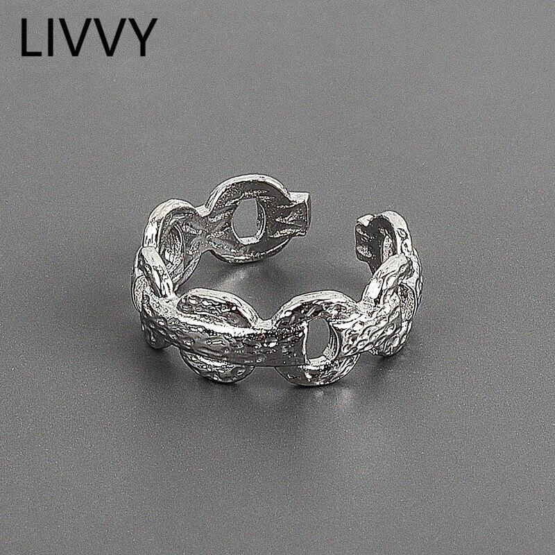 LIVVY シルバーカラー不規則な中空ジオメトリチェーンリング女性ユニークなシンプルなレトロカップル手作りジュエリーギフト 指輪 銀 Liv20538544856