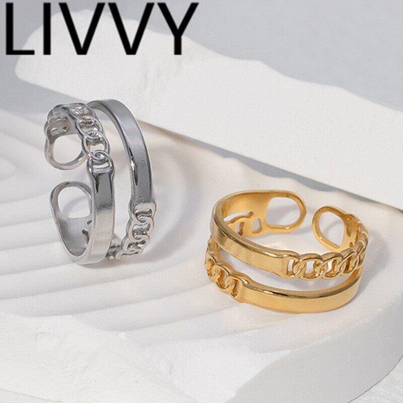 LIVVY シルバーカラーパーソナリティ調節可能なワイドリングシンプルな気質男性女性パーティーアクセサリーギフト アジャスタブル 指輪 銀 Liv95299811688