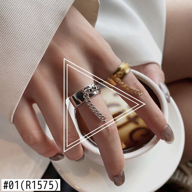 LIVVY シルバーカラーのシンプルな Tel チェーンオープニング調節可能なリングカップルトレンディな気質ファインジュエリー アジャスタブル 指輪 銀 Liv41359668875