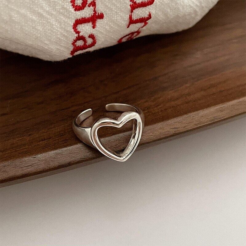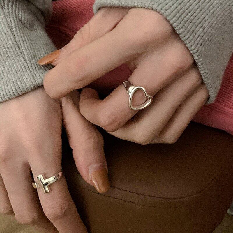 LIVVY シルバーカラークリエイティブ中空ラブハートクロス調節可能なリング女性シンプルなファインジュエリーアクセサリー アジャスタブル 指輪 銀 Liv97115743464