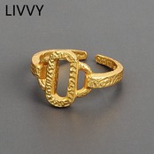 LIVVYSilver 色不規則な表面中空幾何学的な楕円形の調節可能なリング女性の誕生日パーティーファインジュエリーギフト アジャスタブル 指輪 シルバー 銀 Liv48577906082