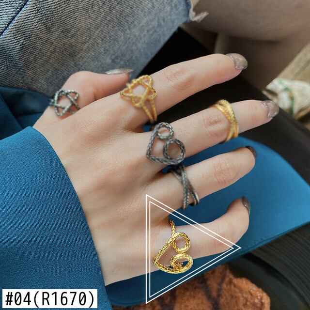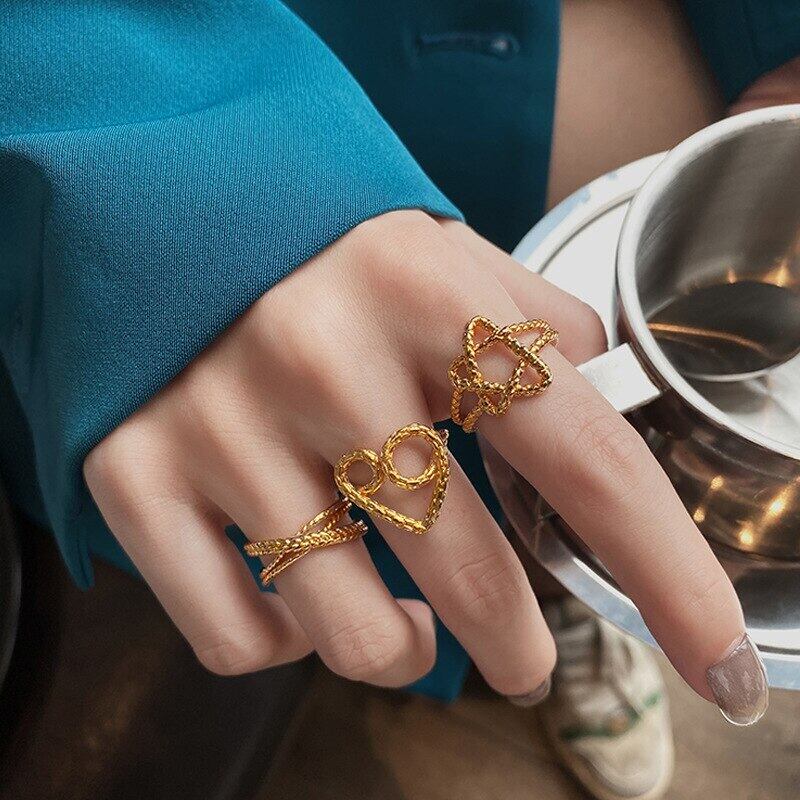シルバーカラークリエイティブツイストハート五芒星形調節リング女性トレンドカップルジュエリーギフト アジャスタブル 指輪 銀 Liv49255467547