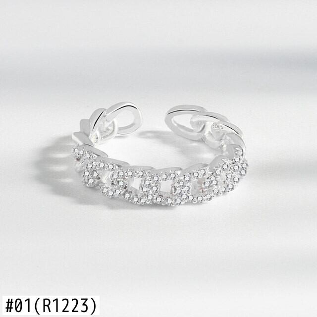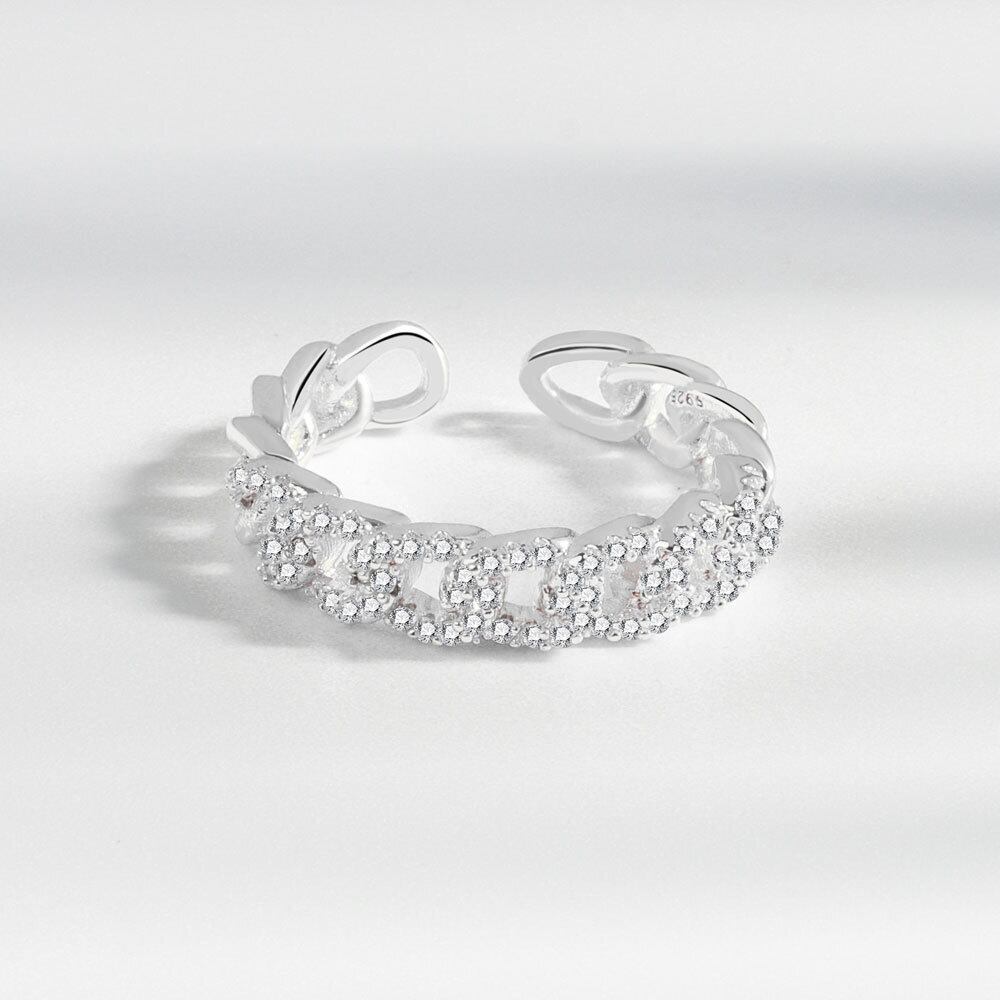 LIVVY シルバーカラートレンディリング女性クリエイティブシンプルな中空幾何学チェーンジルコン誕生日ジュエリーギフト 指輪 銀 Liv74984815839