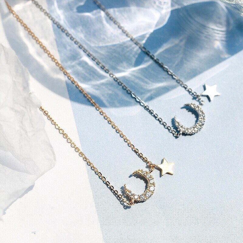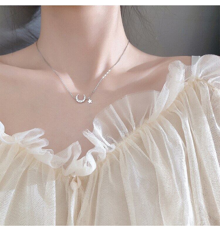 LIVVY シルバーカラーマイクロ象嵌シャイニージルコンムーンスターペンダント女性鎖骨チェーンネックレスジュエリーギフト レース 銀 Liv29878292280