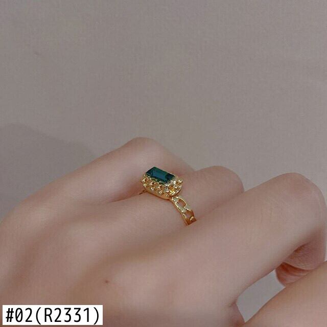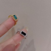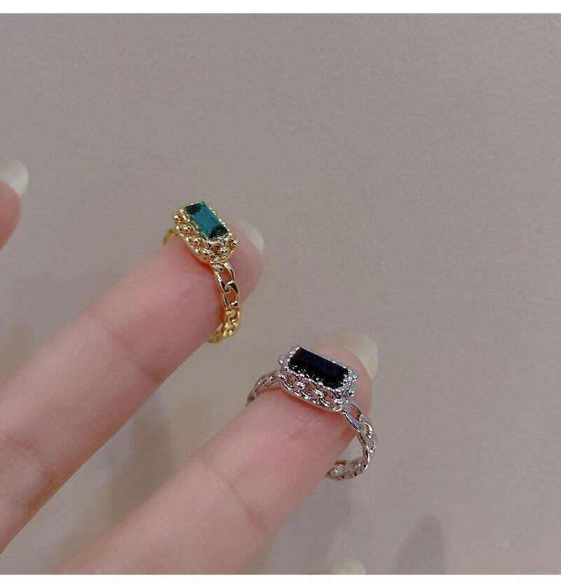 LIVVY シルバーカラー長方形グリーンジルコン指リング女性シンプルな光の高級パーティージュエリー誕生日プレゼント 指輪 銀 Liv22667720976