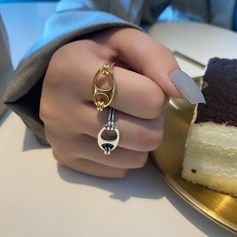 LIVVY シルバーカラーの幾何学的な楕円形の中空リング女性気質ファインジュエリーアクセサリー 指輪 オーバル 銀 Liv99823571338