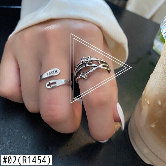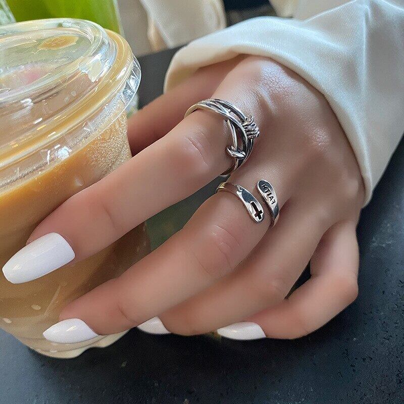 LIVVY シルバー色の創造性 3 層クロス調節可能なリング女性トレンド手紙手作りファインジュエリー アジャスタブル 指輪 銀 Liv1069593242