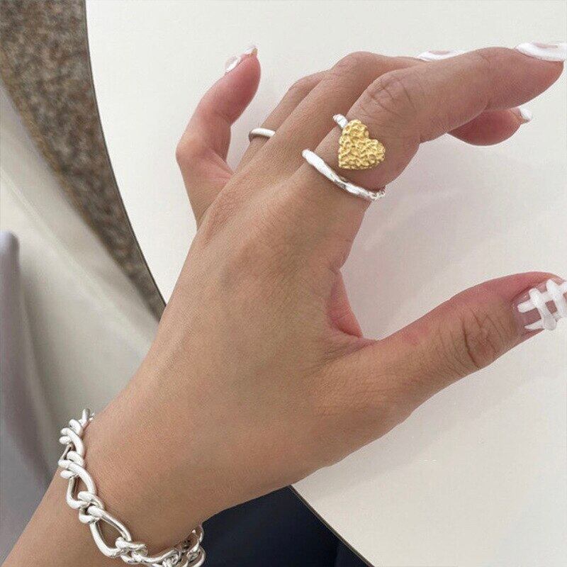 LIVVY シルバーカラーの愛のハートリング女性カップルクリエイティブ不規則な幾何学的なリングパーティージュエリーギフト 指輪 銀 Liv37783373850