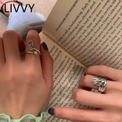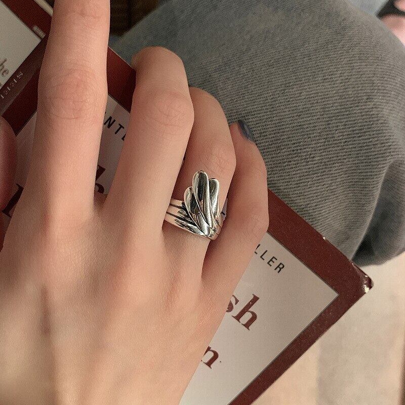 LIVVY シルバーカラーアンティークフェザーアジャスタブルリング女性リーフトレンドクリエイティブストリートスタイルジュエリー 指輪 銀 Liv46001434706