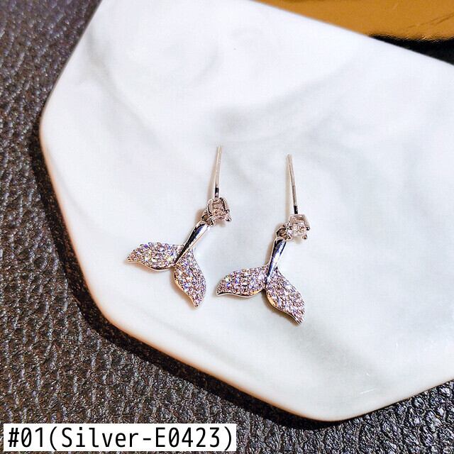 LIVVY シルバーカラーオーシャンスタイルジルコンフィッシュテールチャームイヤリングシンプルな気質の人魚の尾の誕生日プレゼントジュエリー 指輪 銀 Liv33474041820