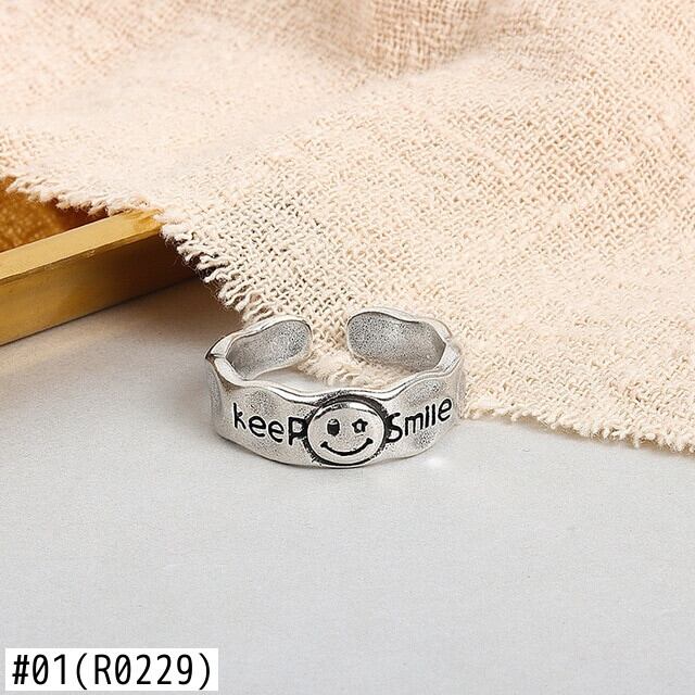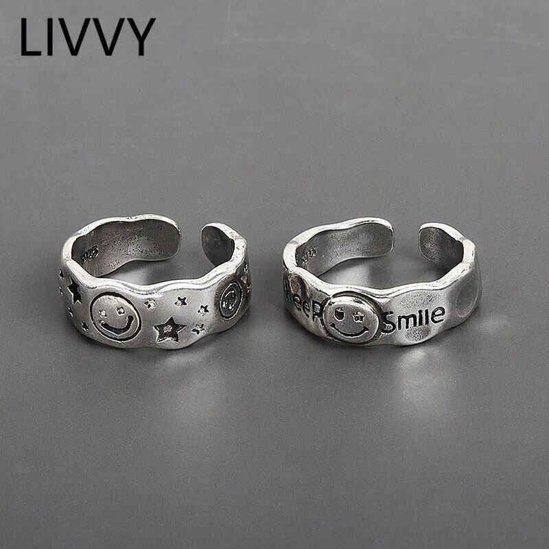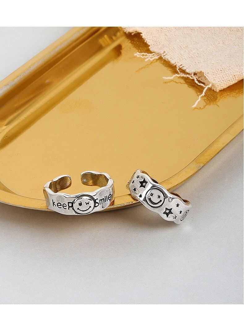 LIVVY シルバーカラーレトロスタースマイルフェイスシェイプオープンリングイントレンドスウィートセクシーハンドメイドヒップホップリング 大人ガーリー キュート カジュアル 指輪 銀 Liv88584354608