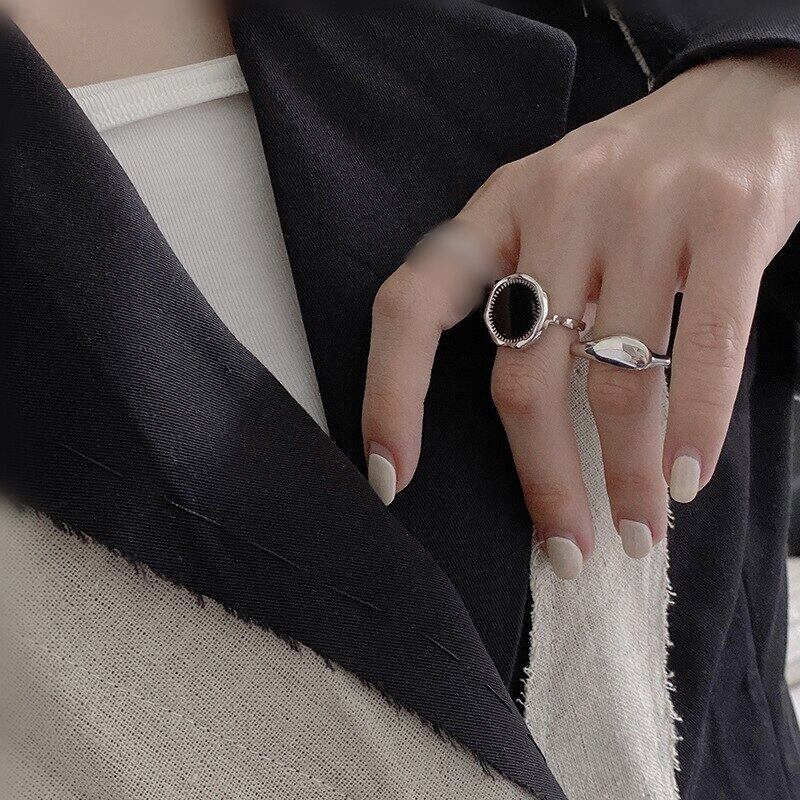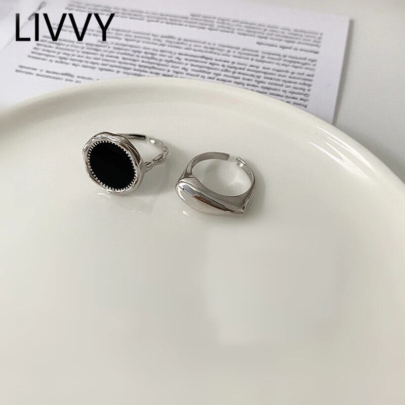 LIVVY シルバーカラーラウンドブラックリング女性ジュエリー美しい指オープンリングパーティー誕生日ギフト 2021 トレンド 指輪 銀 Liv76382445806