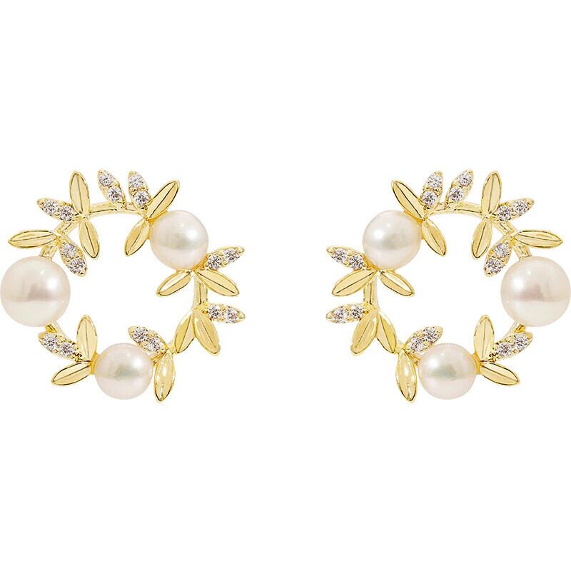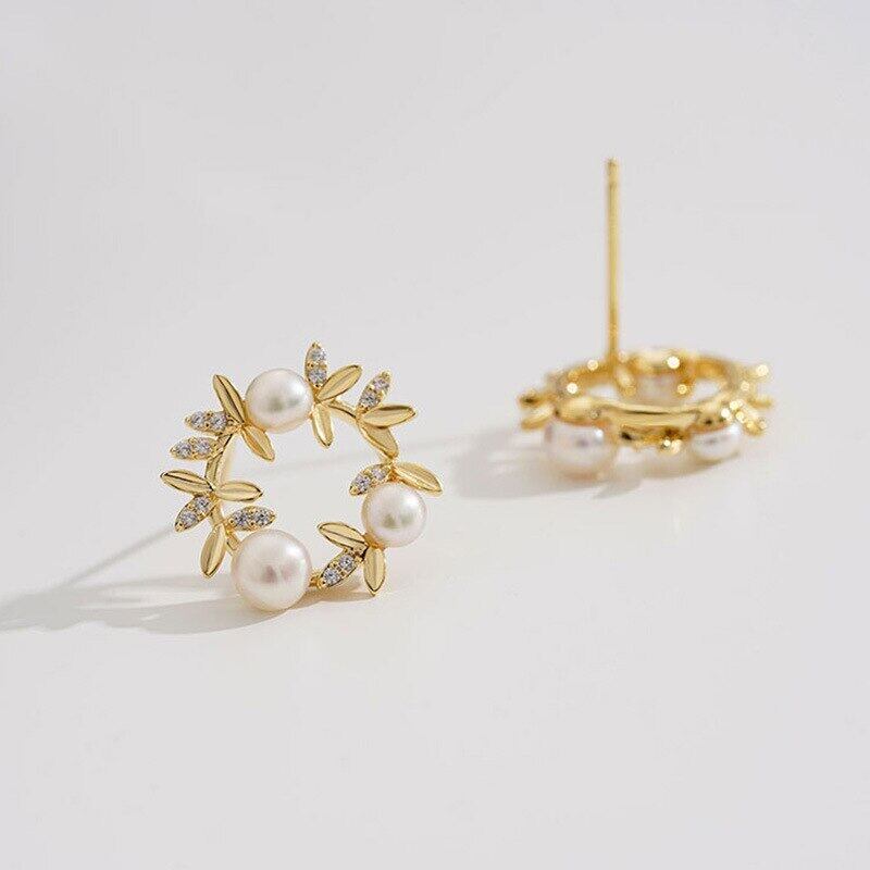 LIVVY 中空アウトラウンドパールジルコンスタッドピアス花嫁ジュエリー女性クリエイティブ葉パーティーアクセサリー イヤリング 真珠 リング 指輪 Liv69834996864