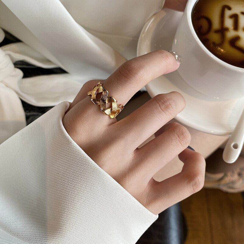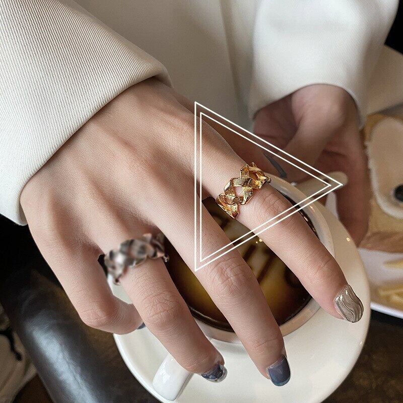 LIVVY シルバーカラーユニークな中空アウトクリエイティブクロスウィービングリング女性レトロファインアジャスタブルジュエリーアクセサリー 指輪 銀 Liv63041371847