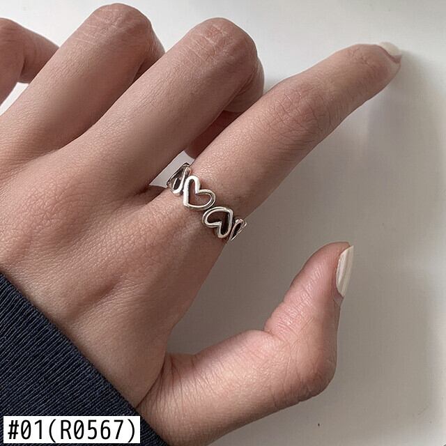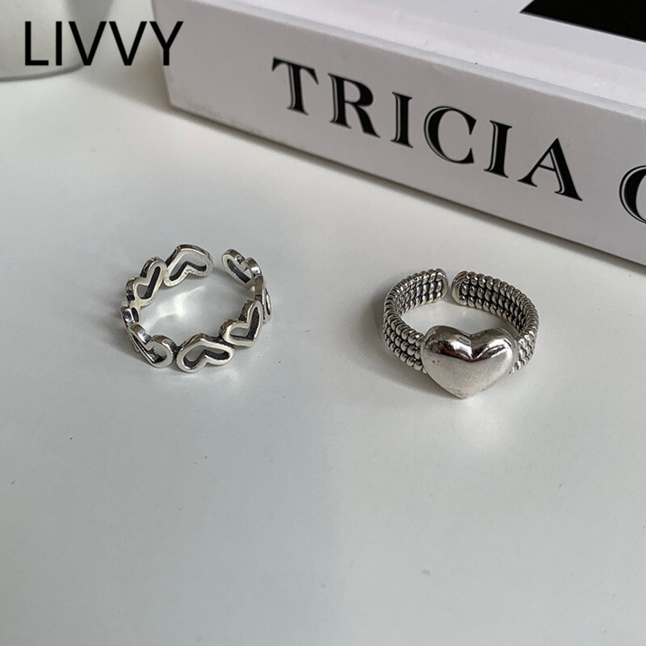 LIVVY シルバーカラー愛のハートリング女性カップルパンク中空幾何学パーティージュエリーギフトトレンド 指輪 銀 Liv16316048338