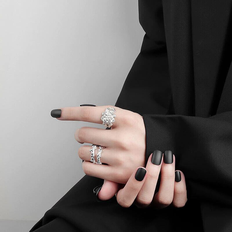 LIVVY シルバーカラー 不規則な表面 凹凸リング 女性 カップル オープン ユニーク ハンドメイド ジュエリー ギフト 指輪 銀 Liv12708881911