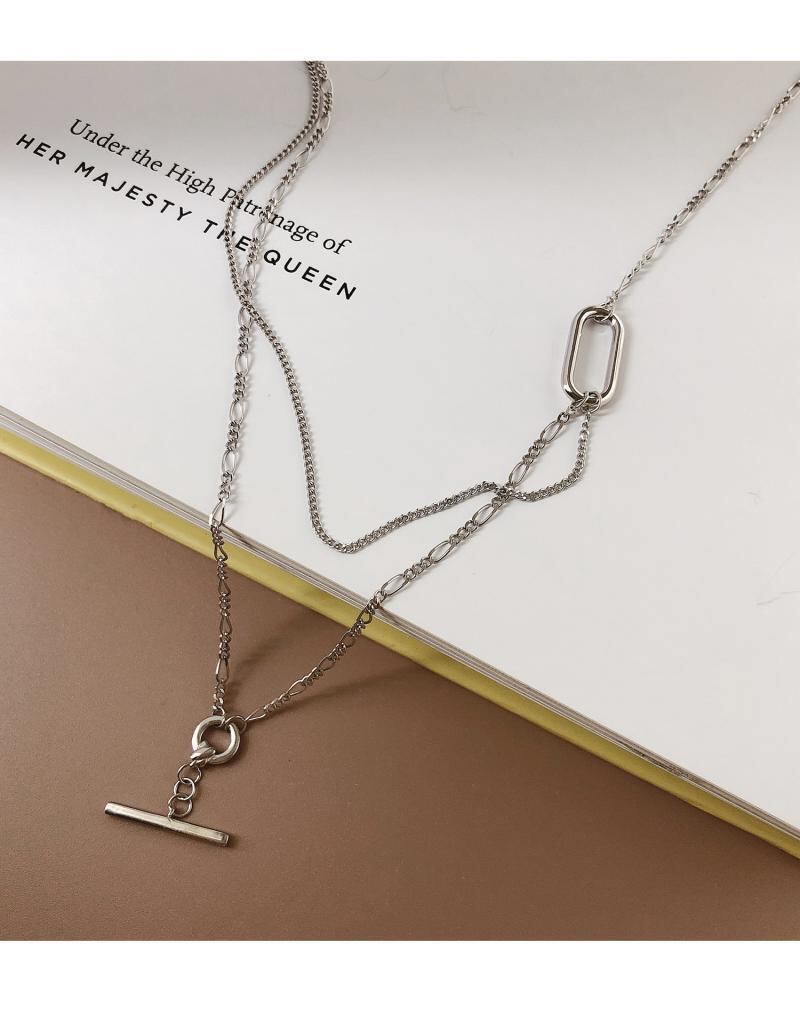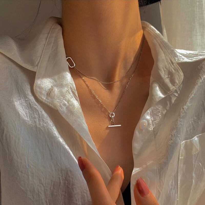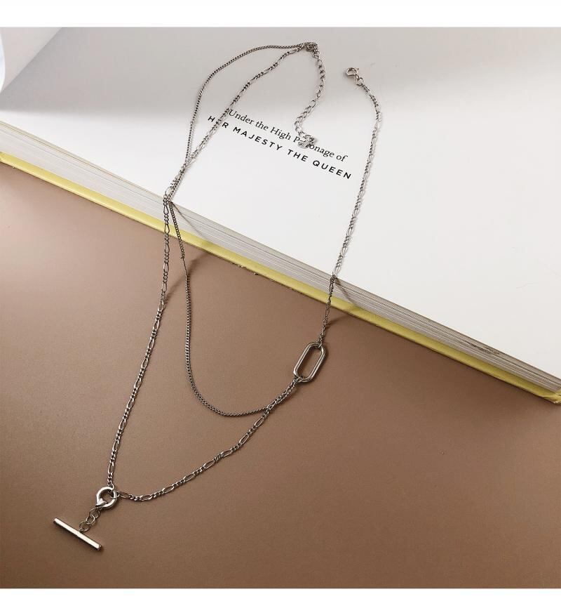 LIVVYSilver カラー トレンディなダブルデッキ ネックレス レディース & ガールズ シンプル ジオメトリー 中空 ラウンド ペンダント ネックレス ジュエリー ギフト レース シルバー 銀 Liv58076688363