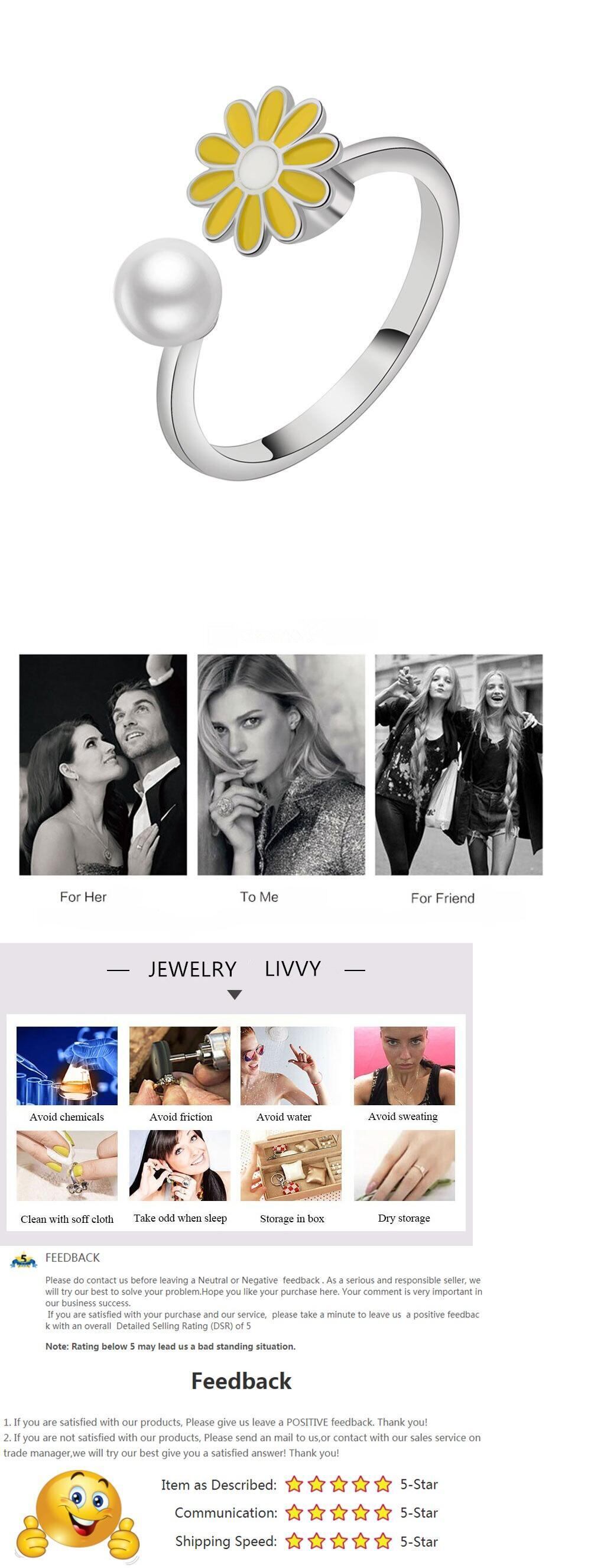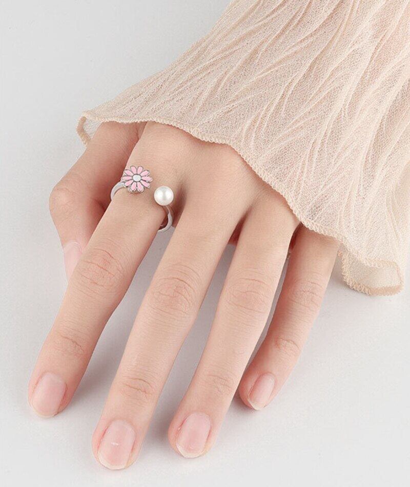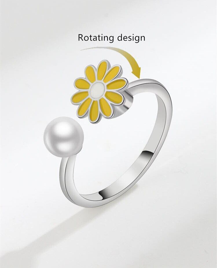 LIVVY シルバーカラーは菊の花を回転させることができます調節可能なリング女性女の子シンプルなクリエイティブジュエリー アジャスタブル 指輪 フラワーデザイン 銀 Liv78068404356