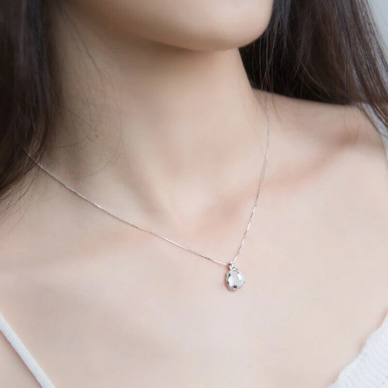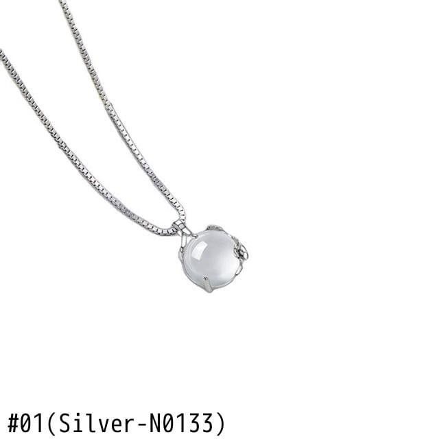 LIVVY シルバーカラーホワイトラウンドクリスタルペンダントネックレス女性細かい鎖骨チェーンパーティージュエリー レース 銀 Liv47299589433