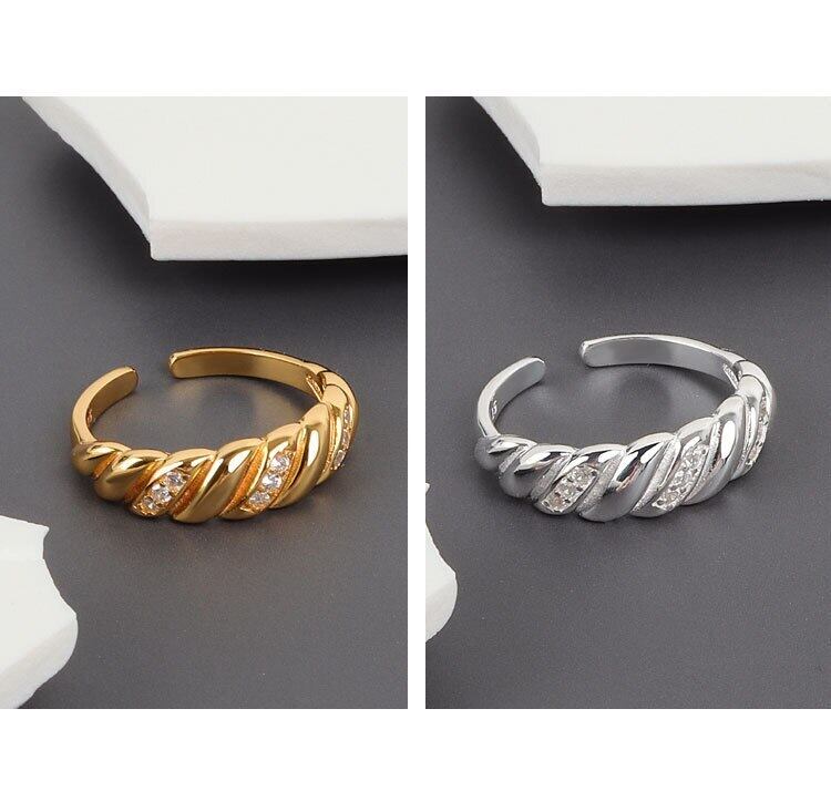LIVVY ミニマリストシルバーカラージルコンツイルツイスト幾何リング女性手作りパーティージュエリーギフト 指輪 銀 Liv21227568545