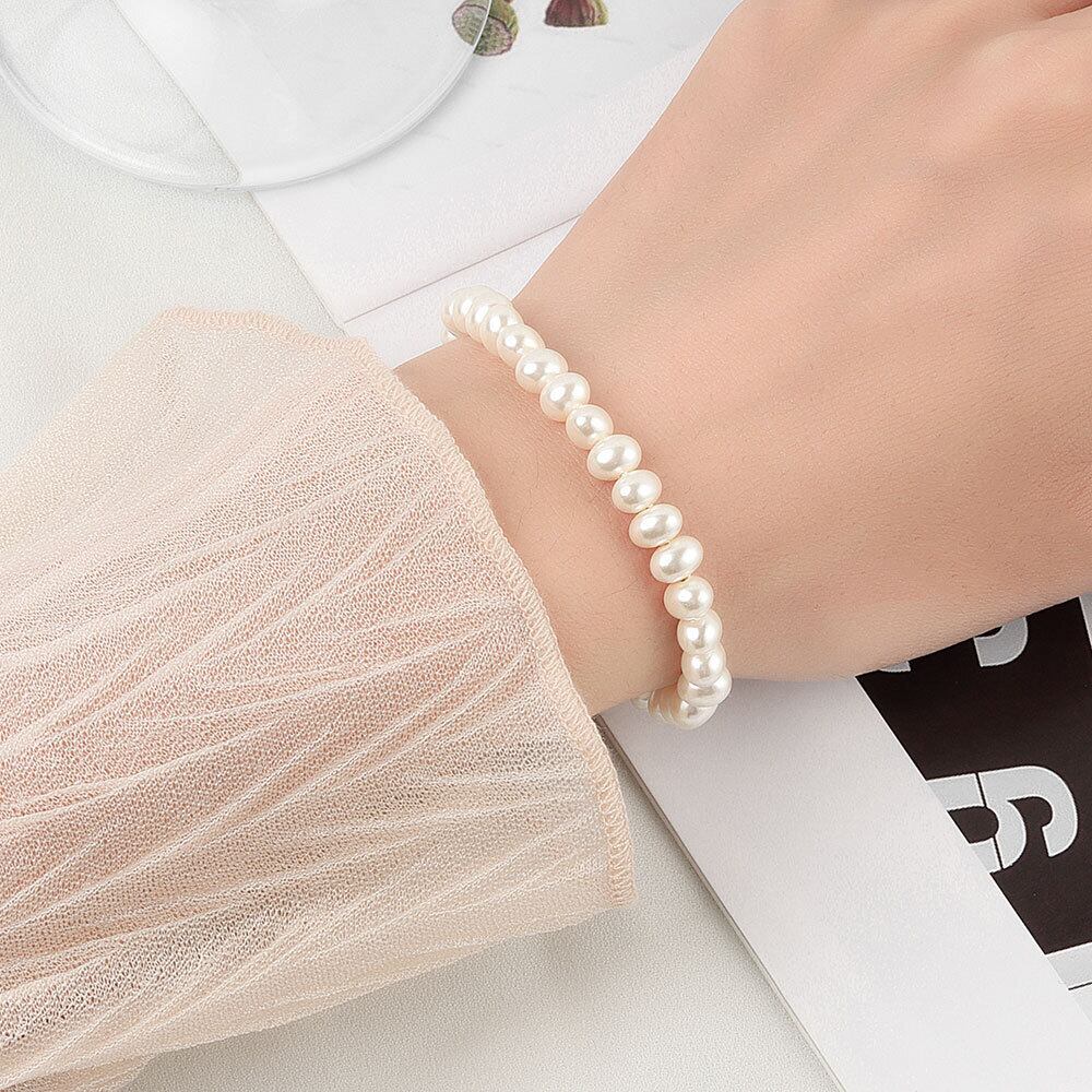LIVVY シルバーカラー Clic イミテーションパールペンダントブレスレット女性絶妙なラッキーアニバーサリーギフトジュエリー 真珠 銀 Liv14058996908