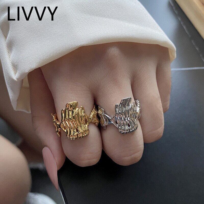 LIVVY シルバーカラーオープニング調節可能なリング女性手作りクリエイティブ不規則な幾何学パーティージュエリー アジャスタブル 指輪 銀 Liv99318926429