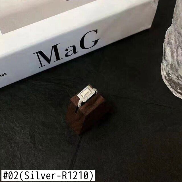 LIVVY シルバーカラー スクエア ラウンド オープン 調節可能なリング 女性 シンプル ライト ラグジュアリー トレンド - 高品質のジュエリーギフト アジャスタブル 指輪 銀 スクウェア Liv8571825861