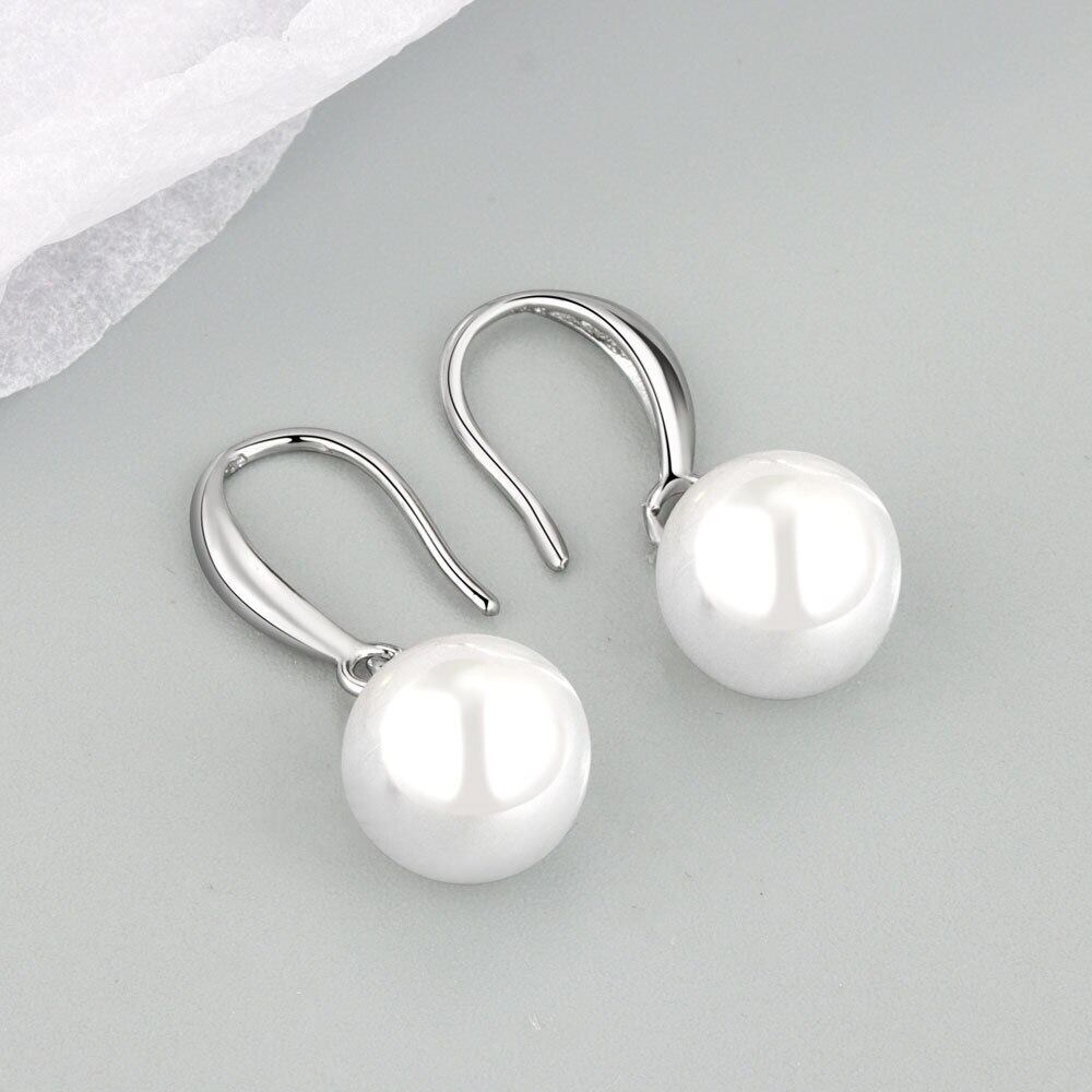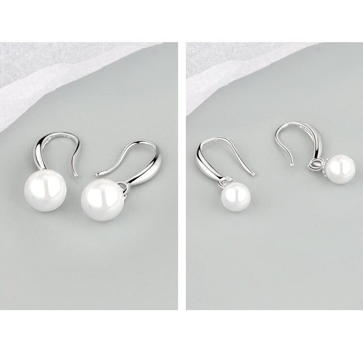 LIVVY シルバーカラーシンプルなトレンディなラウンドパールペンダントイヤリング女性ライト高級エレガンス気質パーティーアクセサリー 真珠 指輪 銀 Liv98905397155