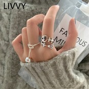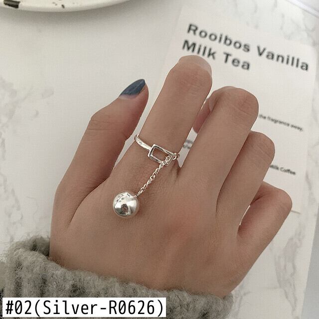 LIVVY シルバーカラー魚骨リング女性絶妙なボールペンダントジュエリーアクセサリー 指輪 銀 Liv38944423585