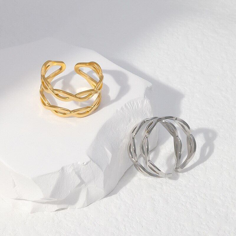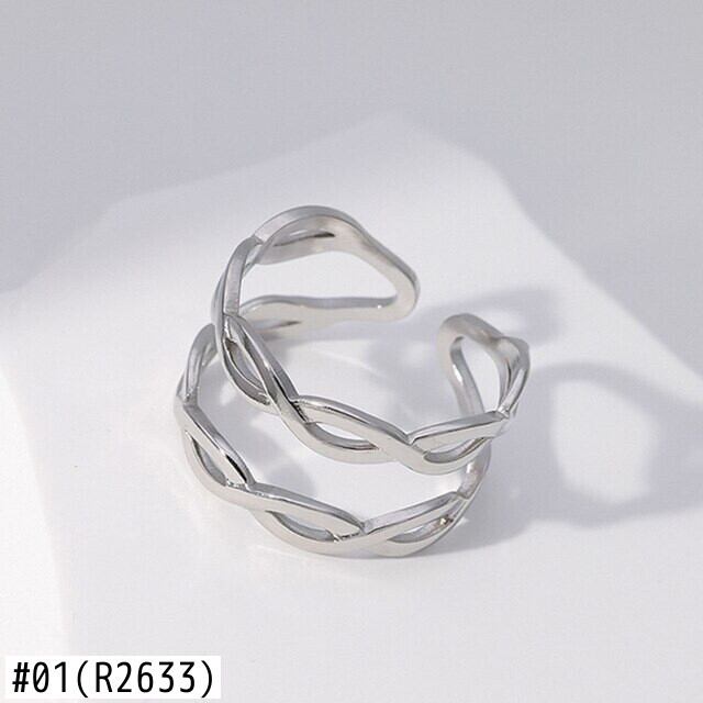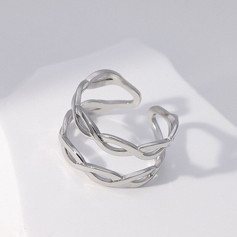 LIVVY シルバーカラーダブルリングチャーム女性クリエイティブ多層中空アウト幾何手作りウェディングパーティージュエリー マルチレイヤー 指輪 銀 Liv72437909349