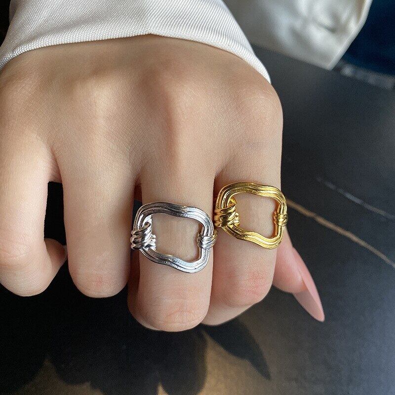 LIVVY シルバーカラーシンプルなトレンディなクリエイティブ中空不規則な幾何学的なリング女性パーティージュエリーギフト 指輪 銀 Liv24645718558