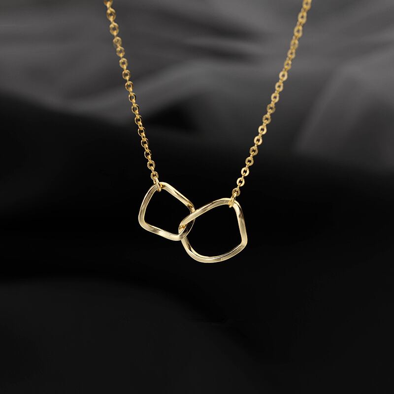 LIVVY シルバーカラー インターロッキング ダブルリング ペンダント ネックレス レディース&ガールズ パーティー ジュエリー ギフト レース 指輪 銀 Liv16275380322