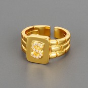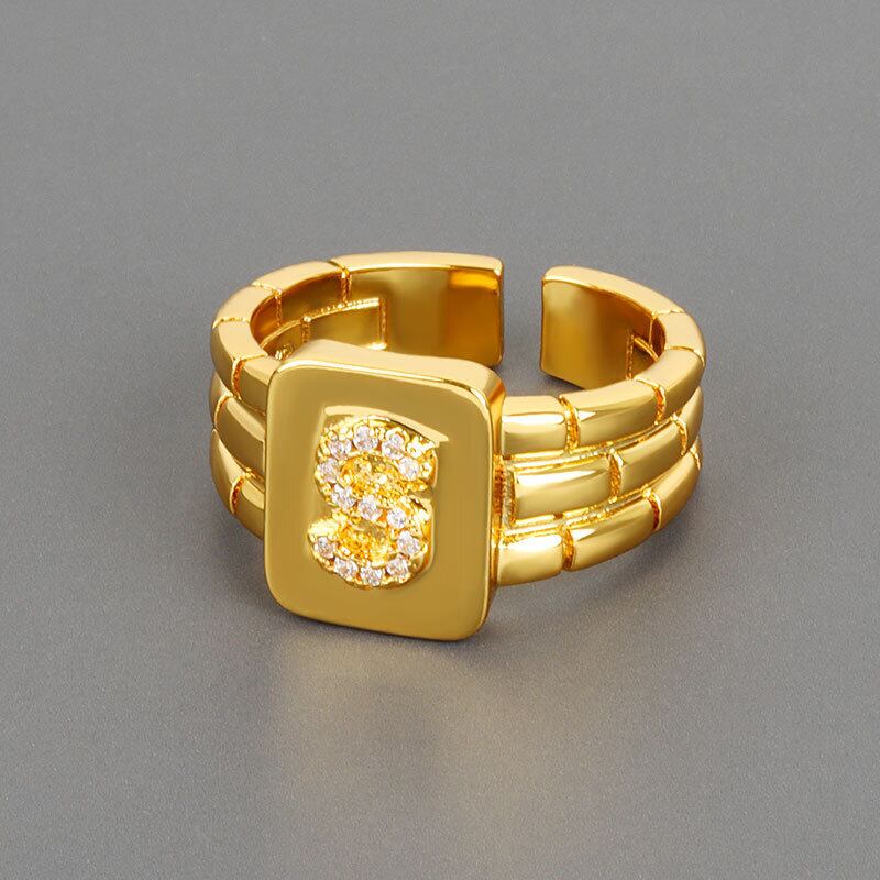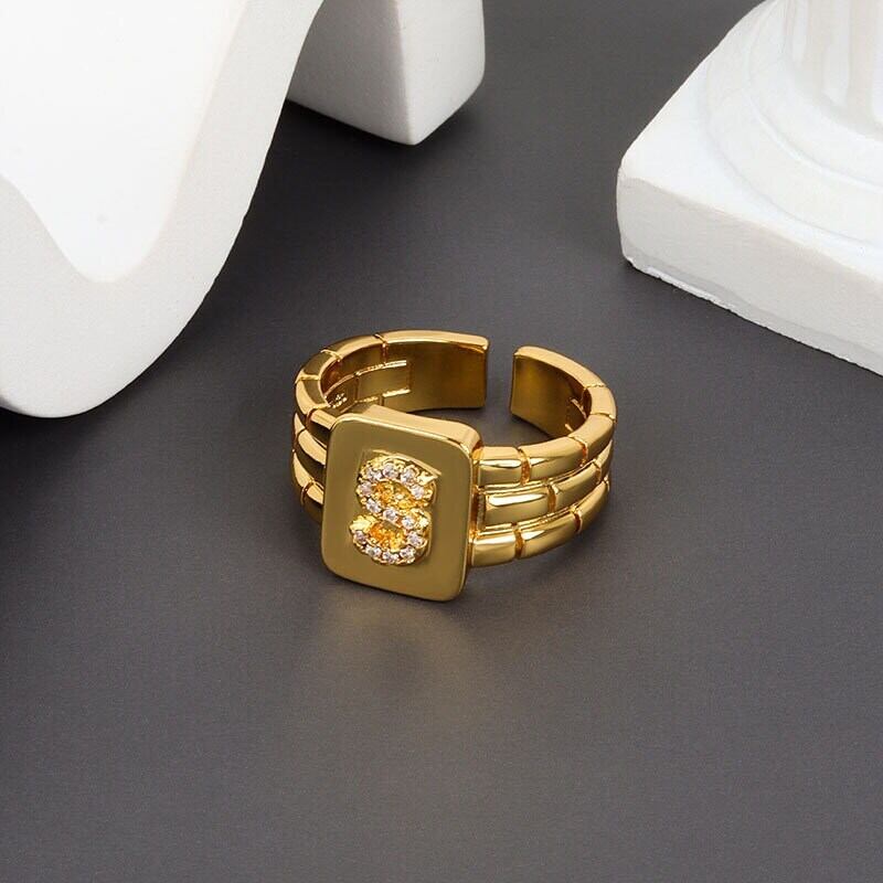 LIVVY シルバーカラーワイドリング女性 S 字型ジルコン結婚式トレンディなジュエリー大調節可能なアンティークリング アジャスタブル 指輪 銀 Liv81800556599