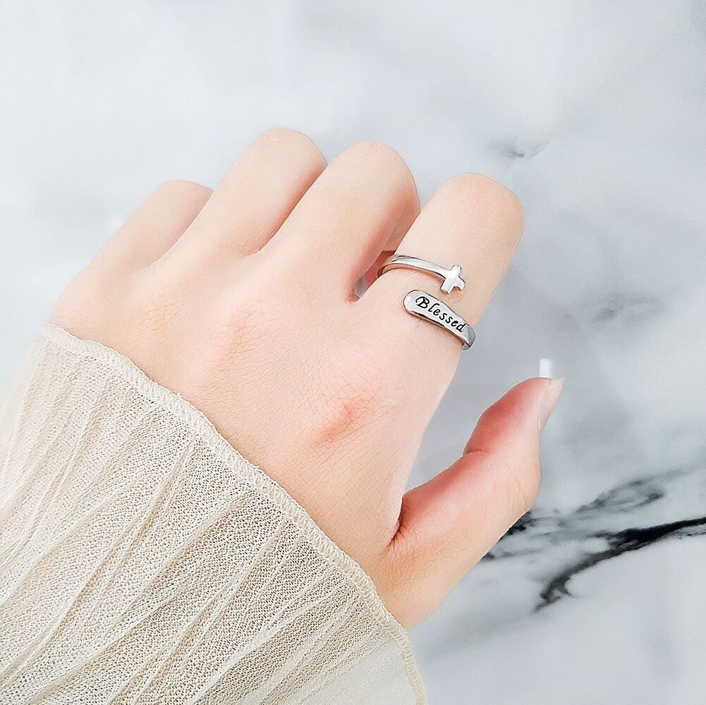 LIVVY シルバーカラー幾何学オープン調節可能なイヤリング女性インパンク英字リングパーティージュエリーギフト アジャスタブル 指輪 銀 Liv10999470606