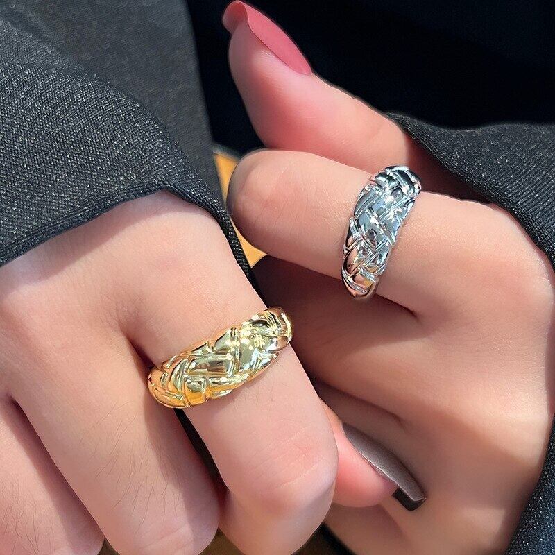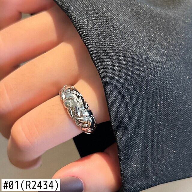 LIVVY シルバーカラーシンプルな幾何学リング女性カップルアクセサリークリエイティブ不規則な質感パーティージュエリー 指輪 銀 Liv96156537271