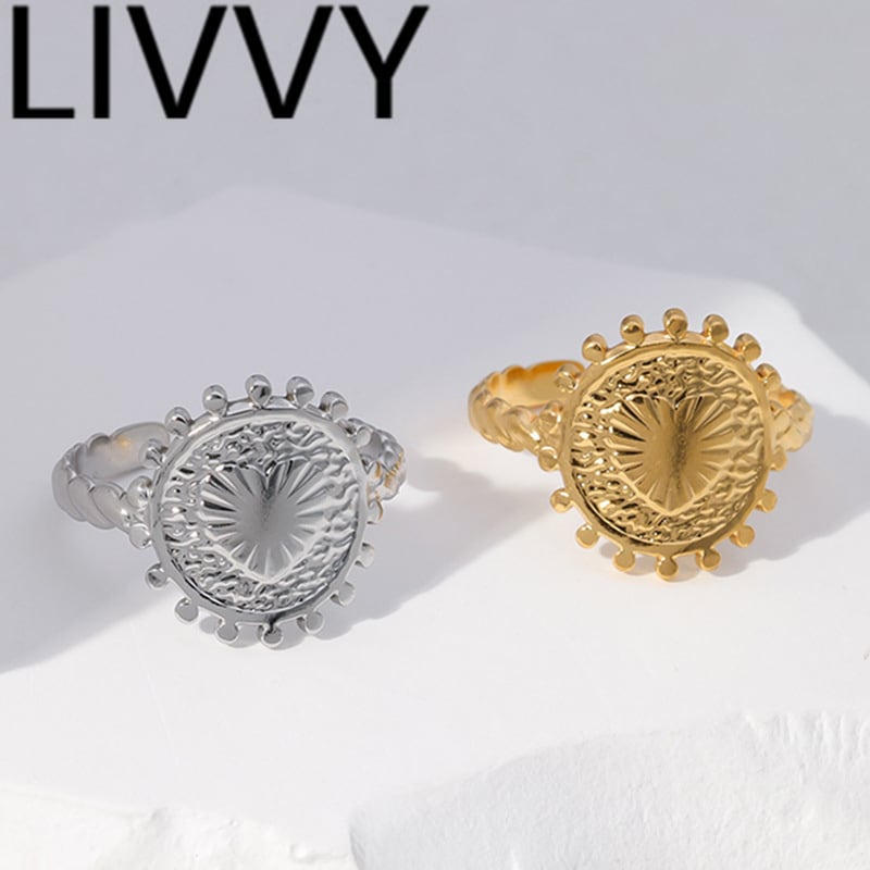 LIVVY パンクレトロシルバーカラーハート幾何学模様ワイドリング女性パーティーギフト花嫁のウェディングアクセサリー 指輪 銀 Liv29298882178