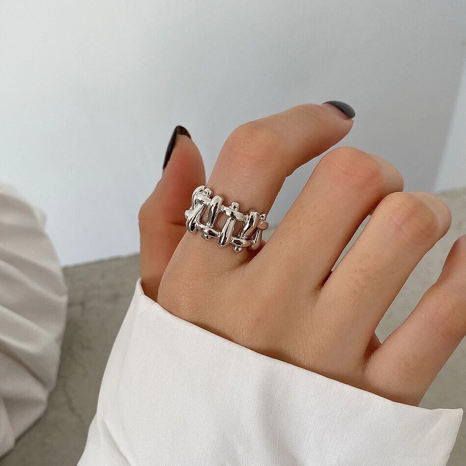 LIVVY シルバーカラー不規則な織中空リング女性の幾何学的なオープンパーティージュエリーリング 2021 トレンド 指輪 銀 Liv25917512579