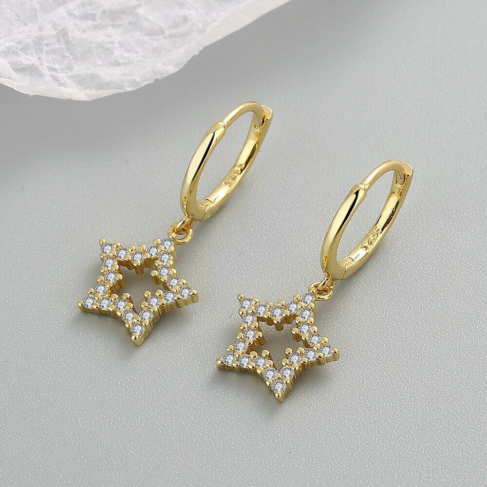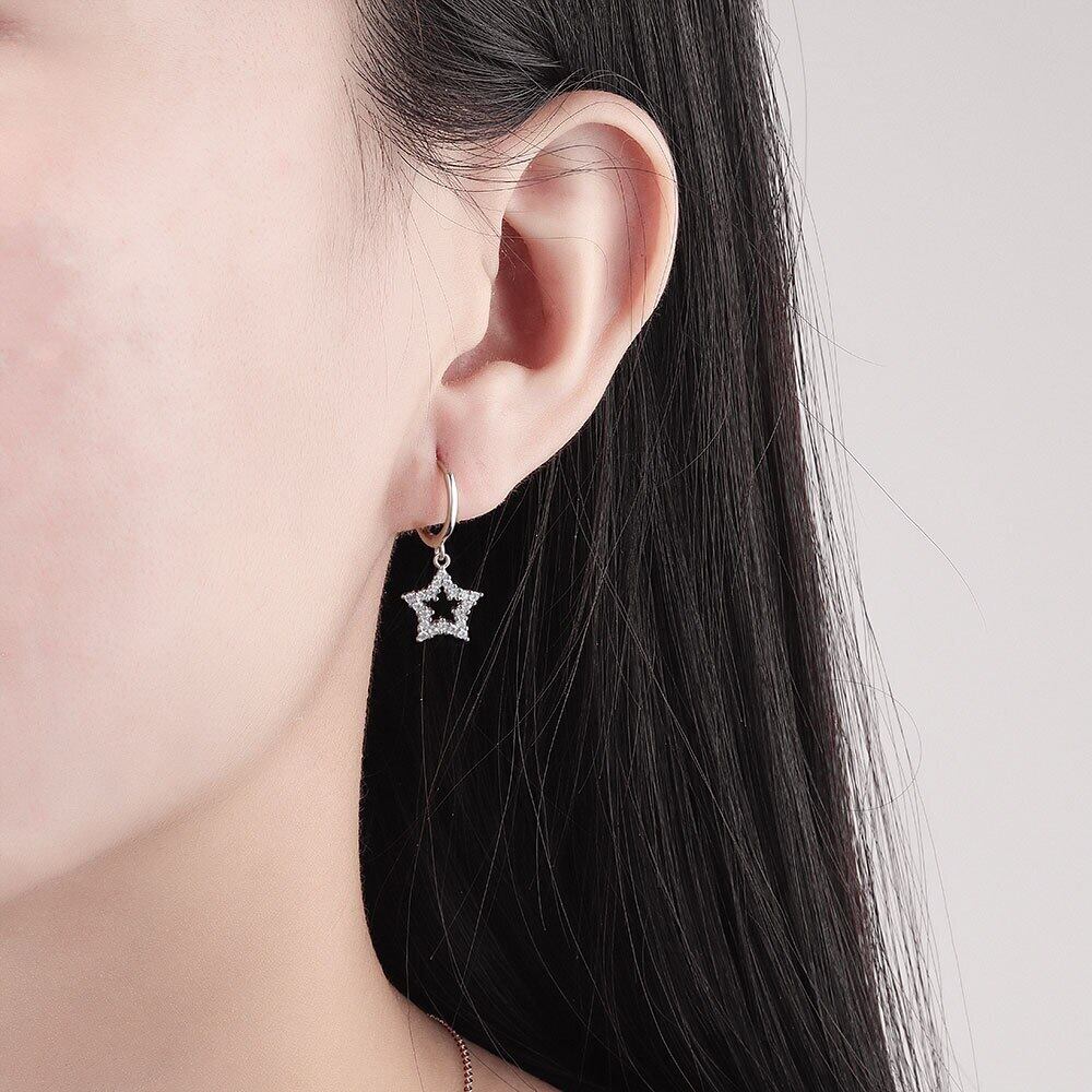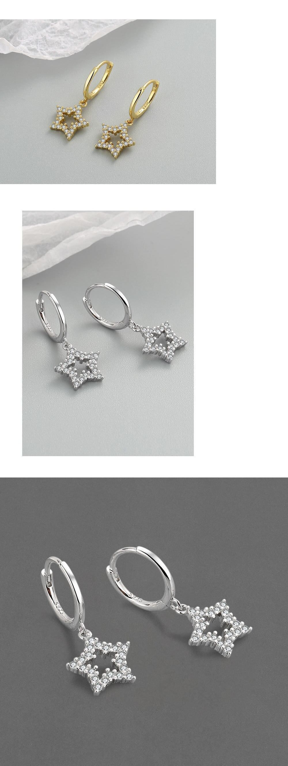 LIVVY シルバーカラーシンプルな中空スタージルコンペンダントイヤリング女性ライトラグジュアリートレンディパーティージュエリー誕生日ギフト 指輪 銀 Liv53782348606