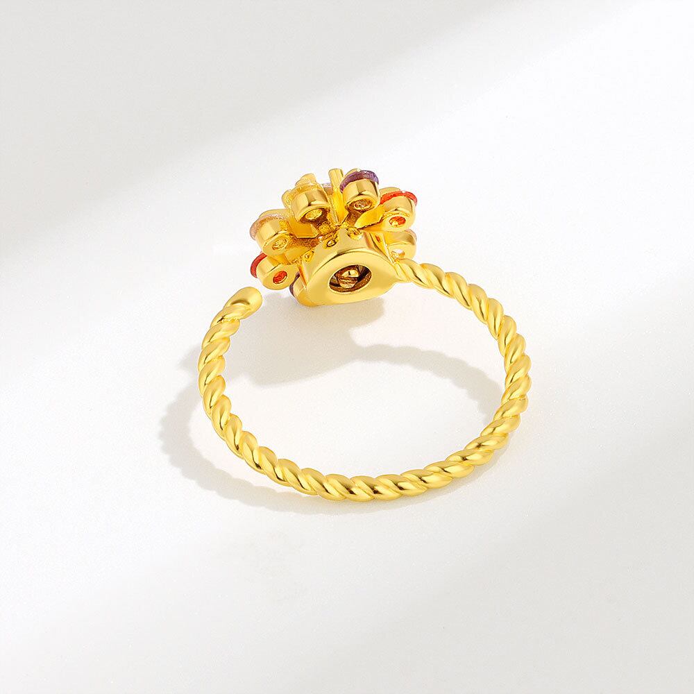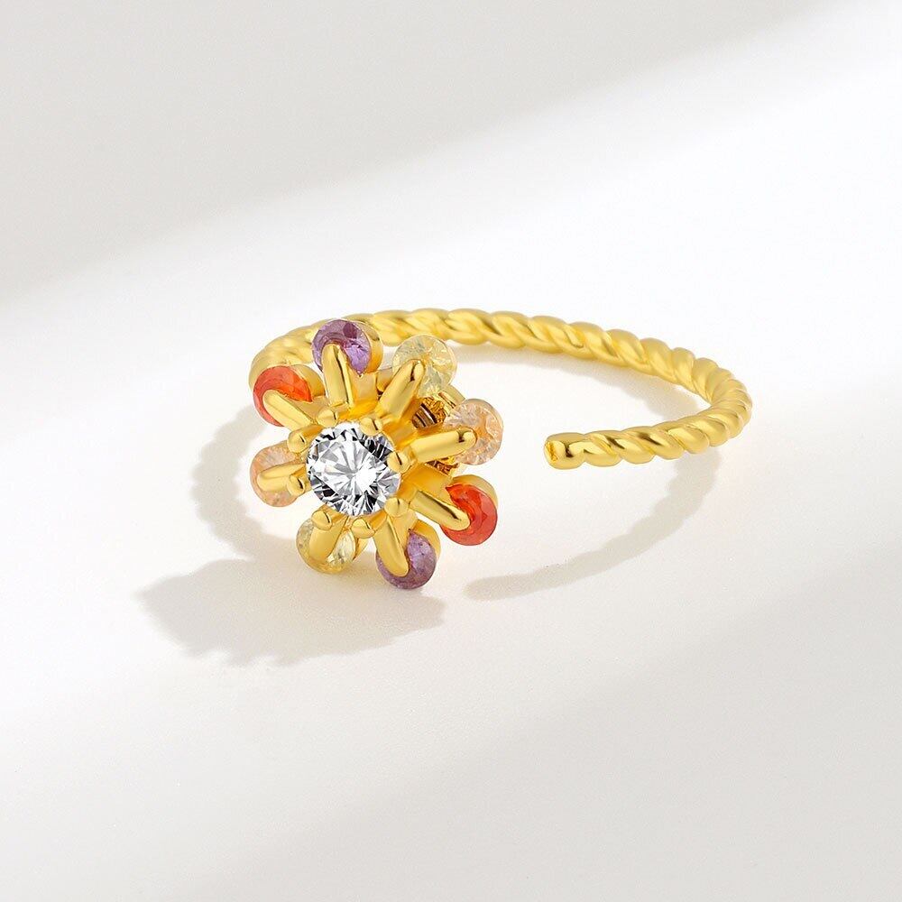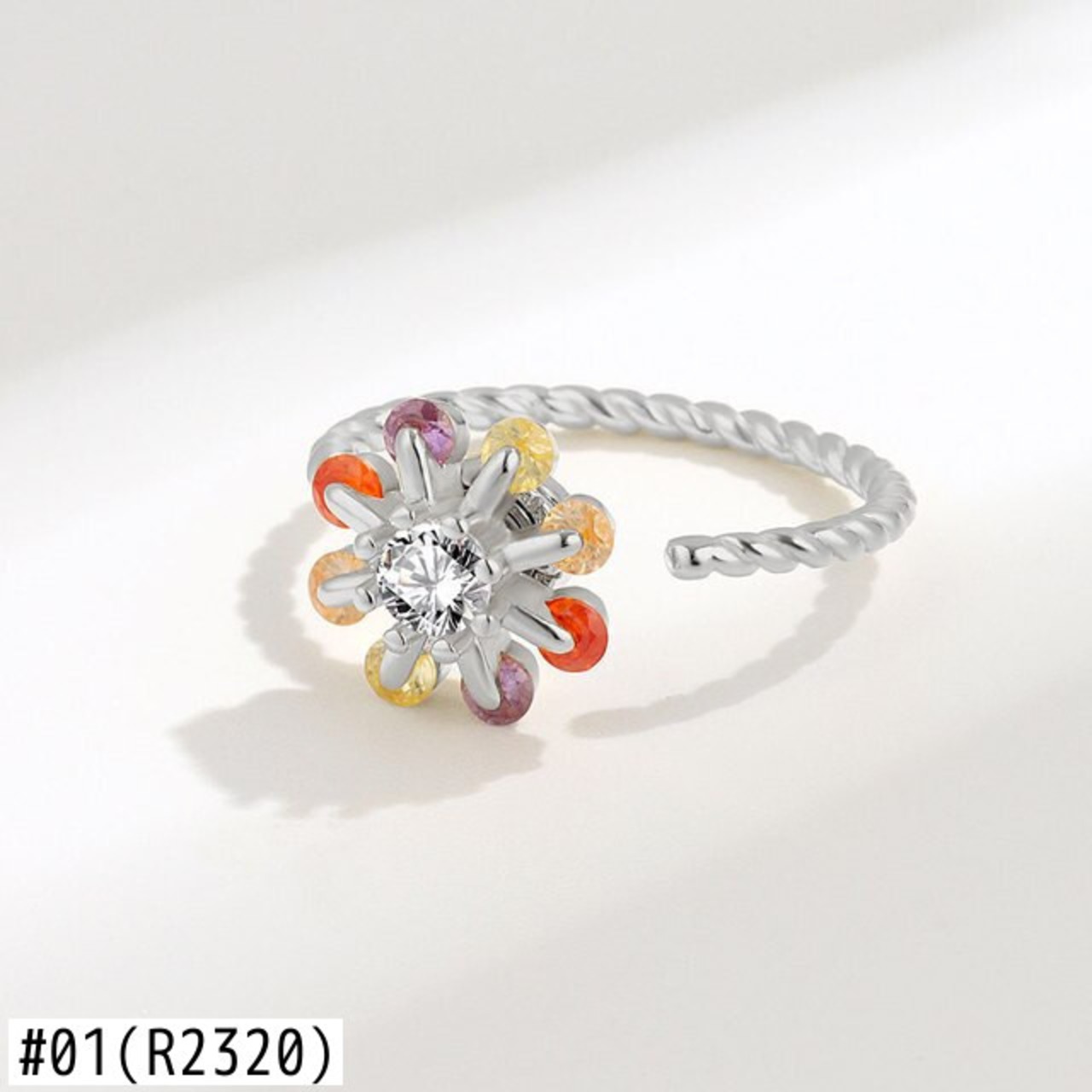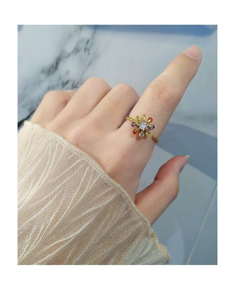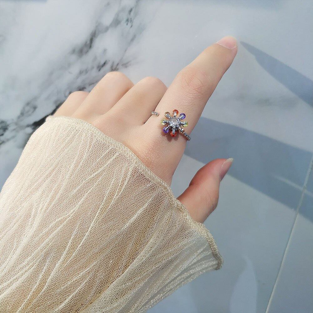 シルバーカラークリエイティブカラフルなジルコンの花回転リング女性ライト高級パーティージュエリー誕生日プレゼント 指輪 フラワーデザイン 銀 Liv72506712136