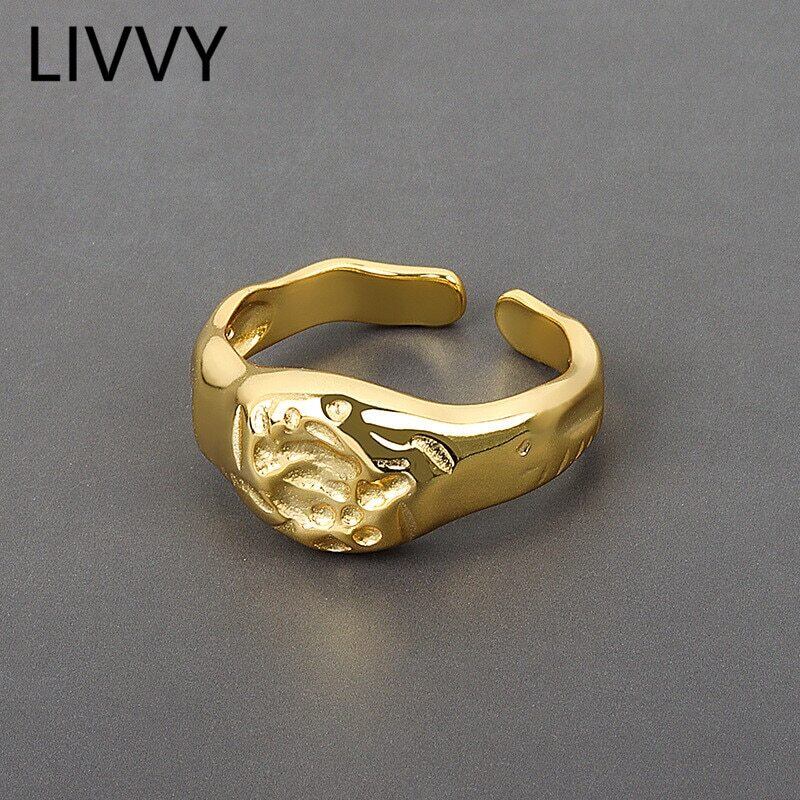 LIVVY シルバーカラービッグチェーンオープンリング女性ブライダルウェディングフィンガーリングクリスマスギフト 指輪 銀 Liv75520696979
