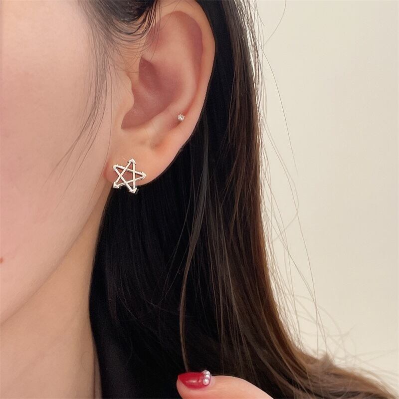 LIVVY シルバーカラー防止アレルギー中空スタースタッドピアス女性トレンディなシンプルなパーティージュエリー イヤリング リング 指輪 銀 Liv30417629228