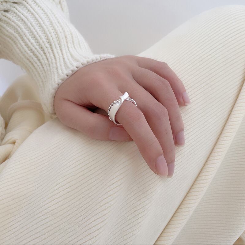 LIVVY シルバーカラー不規則な幾何学的な Tel チェーンリング女性パンクパーティージュエリー 指輪 銀 Liv63343234732