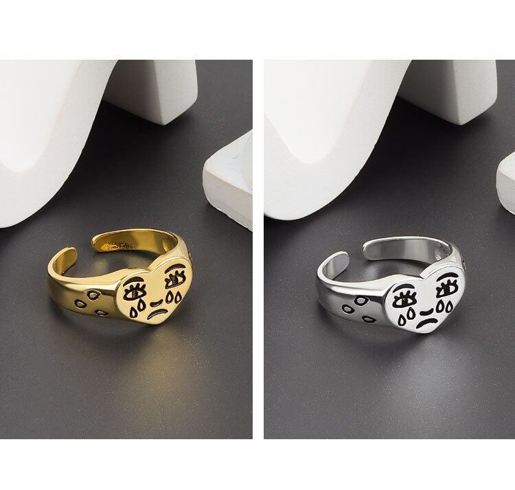 LIVVY シルバーカラーレトロ中空笑顔オープンサイズリング女性ガールジュエリーギフト 2021 トレンド 指輪 銀 Liv66066858350