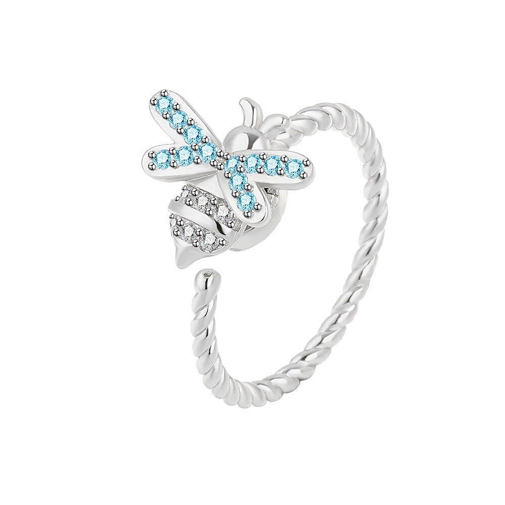 LIVVY シルバーカラークリエイティブかわいい回転蜂調節可能なリング女性ガールパーティーファインジュエリーミニマリストアクセサリー 大人ガーリー スウィート キュート カジュアル アジャスタブル 指輪 銀 Liv58286493267