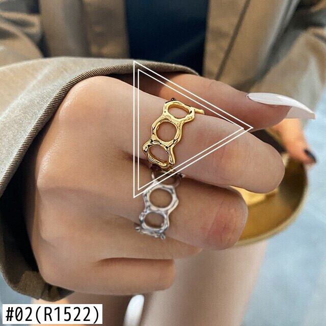 LIVVY 2022 シルバーカラーシンプルな不規則な幾何学中空ラウンドチェーンリング女性パーティージュエリーギフト 指輪 銀 Liv66612461195