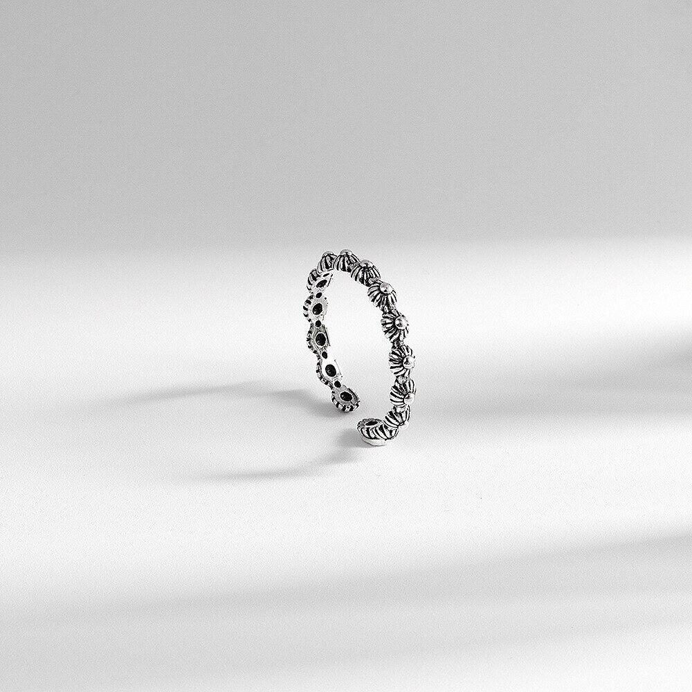 LIVVY タイ シルバーカラー フラワー トレンディ リング レディース - クリエイティブ ハンドメイド パーティー アクセサリー 指輪 フラワーデザイン 銀 Liv30564575562