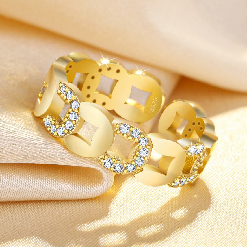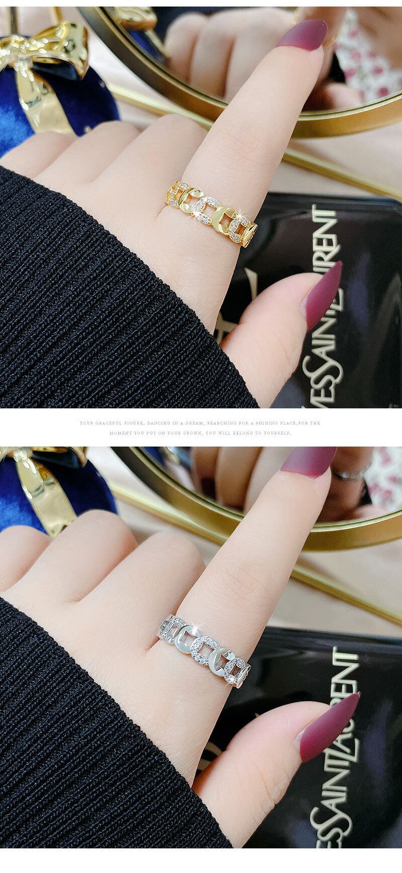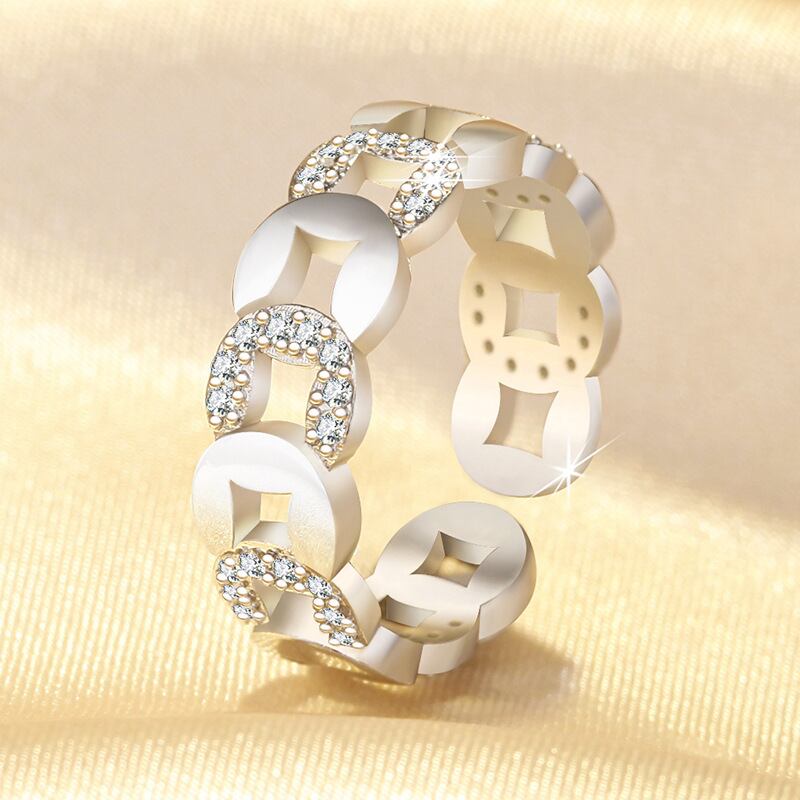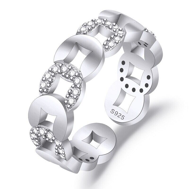 LIVVY シルバーカラークリエイティブ中空ラウンドチェーンジルコンリング女性ガールポリッシュファインギフトジュエリー防止アレルギー 指輪 銀 Liv84154373004