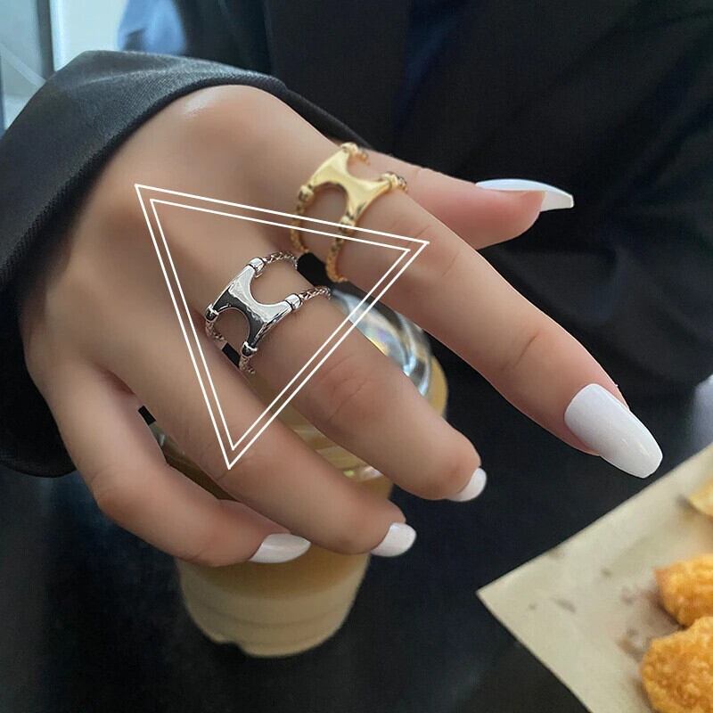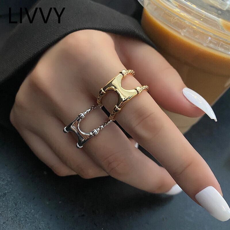 LIVVY シルバーカラー二層中空オープニングリングトレンディなジュエリーアクセサリー女性パーティーアレルギーを防ぐ 指輪 銀 Liv56968959939